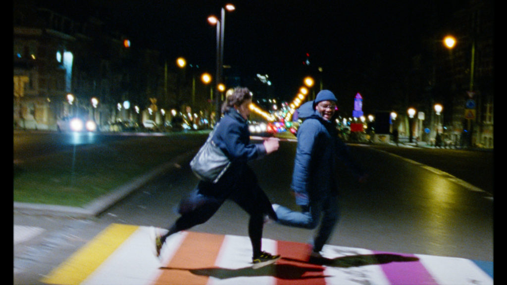 L.H. : Ça, c’est difficile de répondre. Je pense que c’est beaucoup dans le jeu des comédiens, en fait, comment les interactions sociales arrivent. Tu vois surtout avec le personnage de Léonie, Julia, que parfois elle est très ouverte, quand elle est en train de chercher des gens pour son travail, parfois elle reste très à l’intérieur d’elle-même. Elle ne va pas répondre. C’est dans des petites scènes comme ça que tu vois les contradictions, comment elle réagit. Et il y a probablement une forme de tristesse, car elle est très sociable. Elle est très expressive. Mais au début, elle montre seulement ce côté, je pense, quand elle est en train de travailler, où il y a une forme d’authenticité, mais aussi un masque qu’elle porte. Je pense que là, tu peux ressentir cette solitude. Probablement, on a aussi dans des silences, où elle est juste seule, dans le métro. Ce sont des choses très quotidiennes, que tout le monde reconnaît, comme quand tu es dans le métro et tu as un moment où tu n’es pas très bien, ou tu cours dans la ville et tu regardes tout le monde autour de toi. Tu es entouré par beaucoup de monde, mais tu n’as pas des interactions avec les autres gens. La nuit aussi, bien sûr, amène de ces moments où il y a une réflexion dans votre vie, je trouve. Ça, c’est plutôt intuitif.